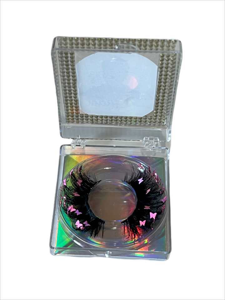 These lashes have pink butterfly 🦋 and pink glitter