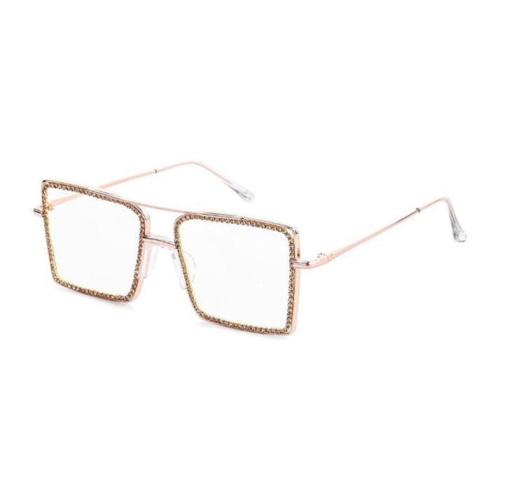 Zenzadofficial Rhinestone rim square Gold frame sunglasses clear lens’s
